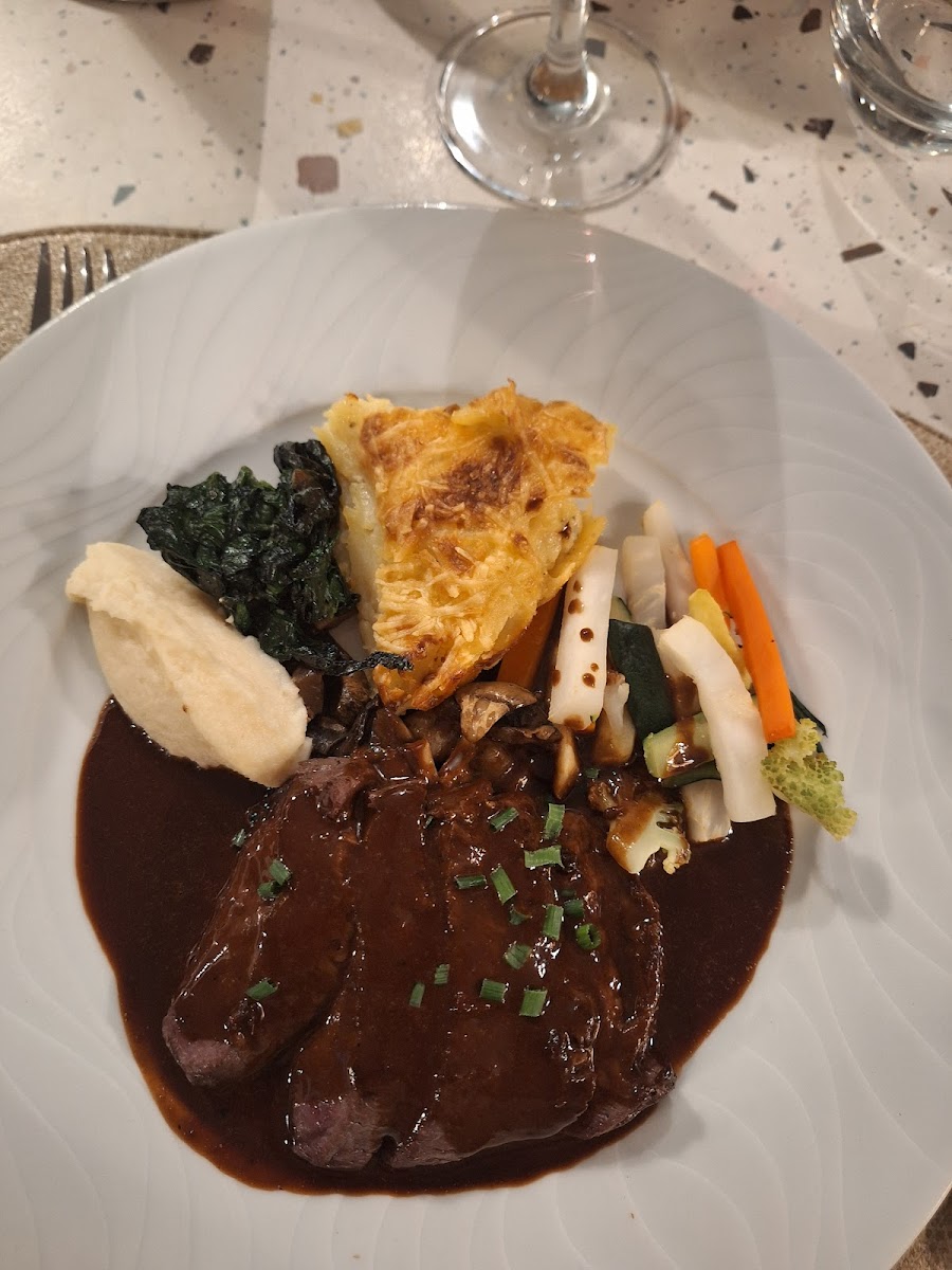 Main courses at L'abricotier are nothing short of extraordinary. The Magret de Canard is a standout, cooked to perfection with a crispy skin and tender, juicy meat that pairs wonderfully with seasonal sides. If you have a sweet tooth, the Soufflé Grand Marnier will transport you to dessert heaven. Light, airy, and infused with the rich flavor of Grand Marnier, it's a showstopper that perfectly balances sweetness with sophistication. And for those who crave chocolate, the Moelleux Chocolat Glace Vanille is a decadent treat, with its warm, gooey center and cool, creamy vanilla ice cream.